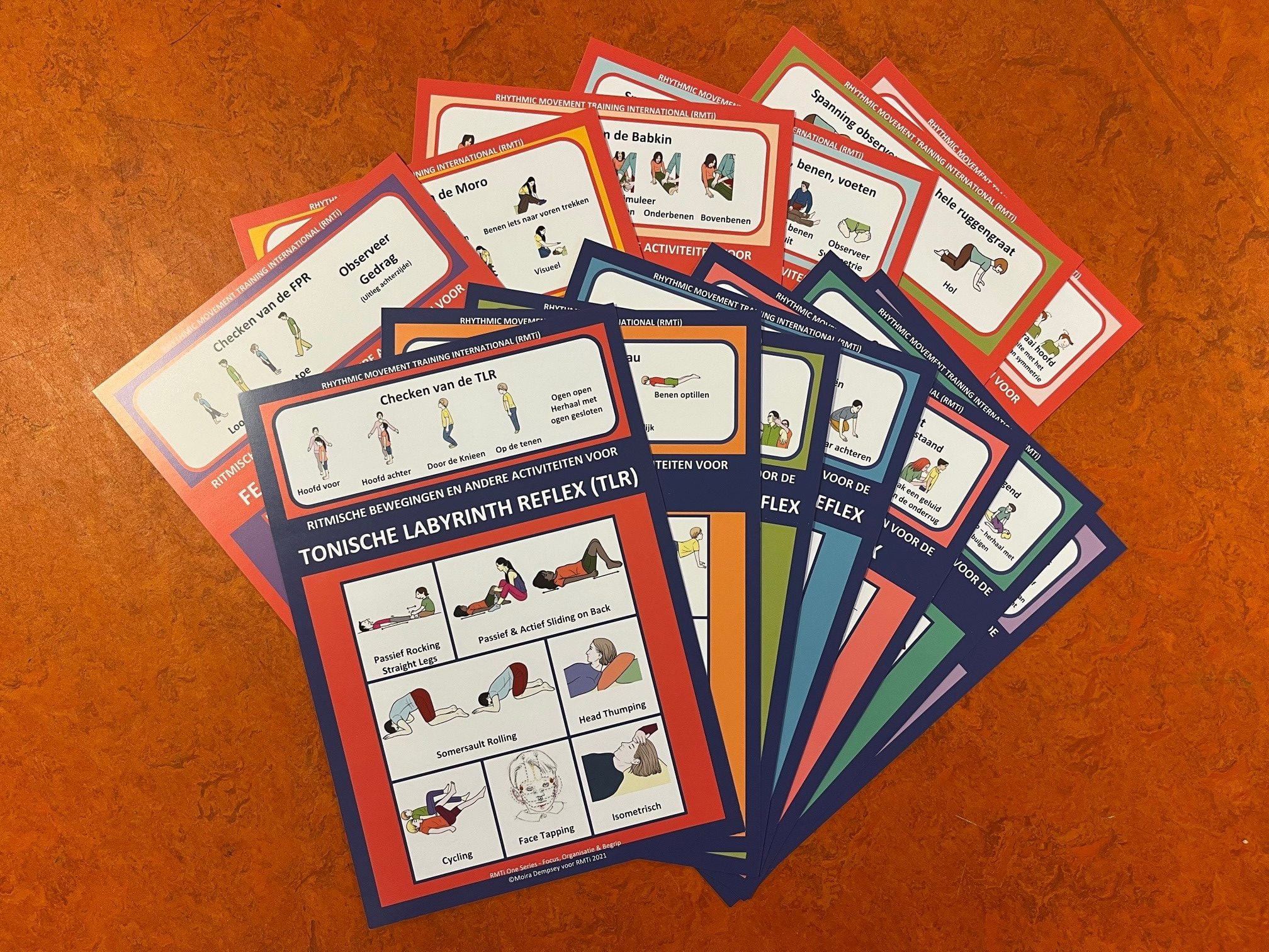 Aan de voorkant zie je de oefeningen van de RMTi reflexintegratiemethode.